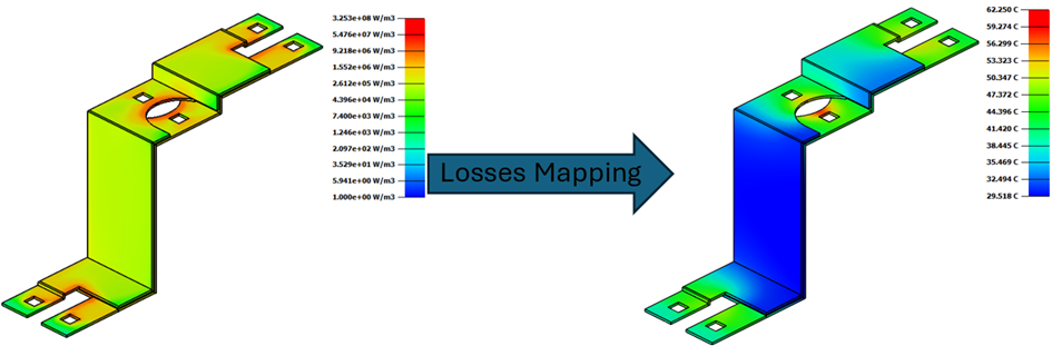 The results of Joule Losses can be mapped to Flow solution by browser right click on Boundary Conditions as follow