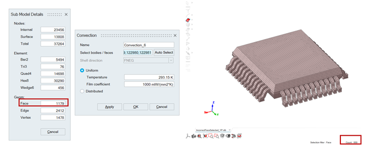 Below example: Using Auto-Select algorithm 889 faces are extracted for external convection.