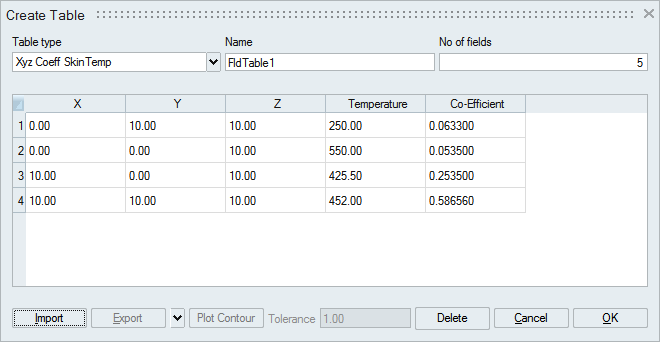 For each node of the selected Face/Body, a bunch of XYZ data (close to the node) is obtained from the given table and then the Film Co-efficient and Temperature values for the node is obtained based on the distance from the node to the XYZ data. The XYZ data nearest to the node has a greater influence on the Film Co-efficient and temperature values for the node.