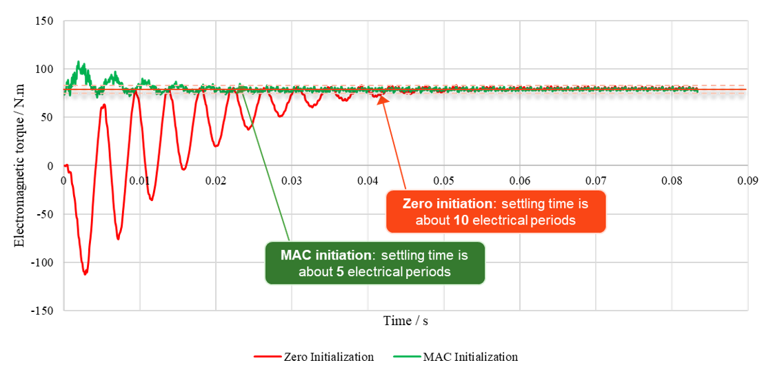 A typical use case for the Initialization by a FE solution is the induction motor analysis which takes a long simulation time to reach the steady state.