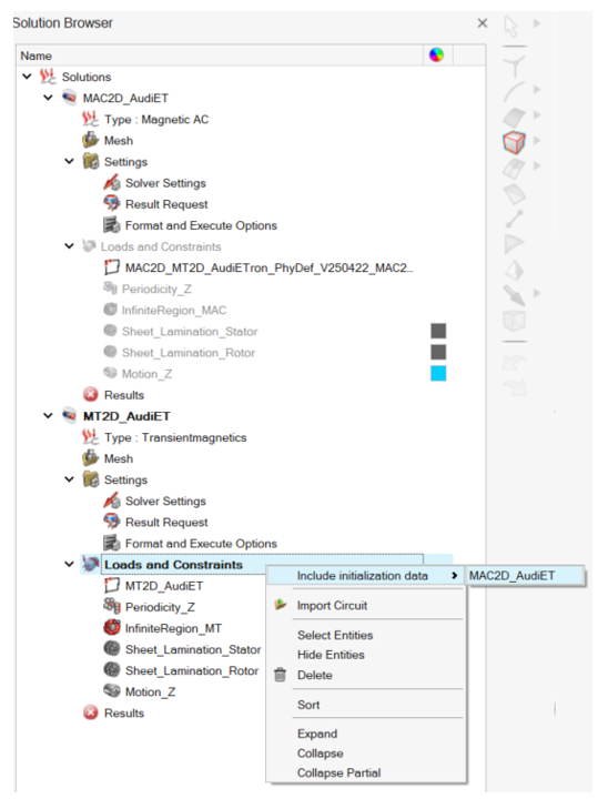 - There is not yet any automatic solution conversion (for example from MAC2D to MT2D). It is needed to define manually the solution with its physics (Loads and Constraints, circuit etc.)