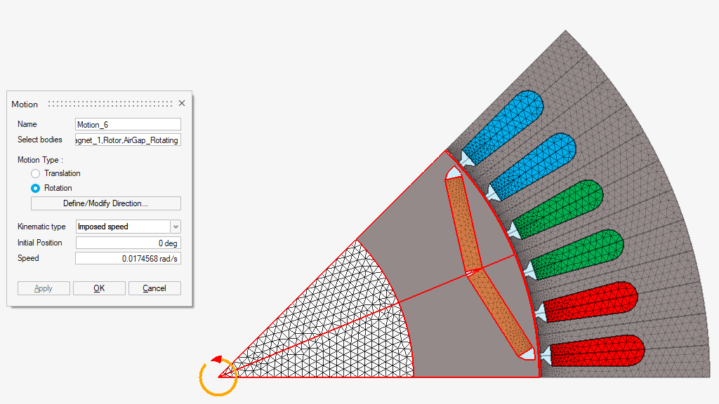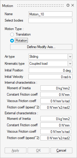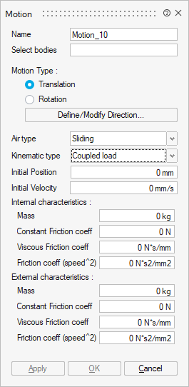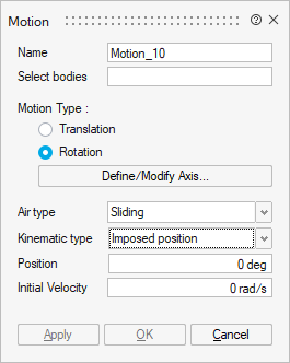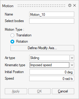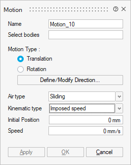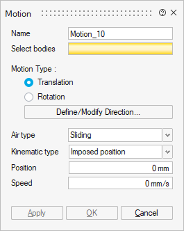 The Motion allows you to define the motion of some bodies of the solution.