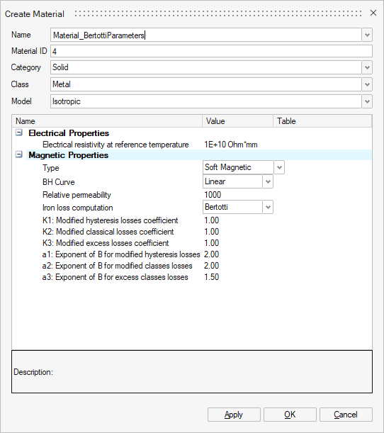 a Soft Magnetic Material with Bertotti parameters should be assigned to the body