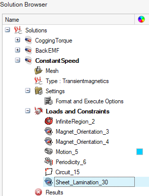 → The sheet lamination is created and appears in the Solution Browser in the Loads and Constraints node.