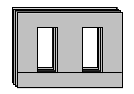 The sheet lamination is said to be laminated because it automatically accounts for the effect of the insulation of the electrical steel and for the small air gaps between the sheets in a stack. This is achieved through a homogenization procedure implemented. The overall effect of this homogenization is that the effective cross-section of magnetic material available for the magnetic flux to traverse in the region is reduced. The reduction factor is known as the stacking factor of the region, and corresponds to the total cross section area occupied by magnetic material (steel) in the stack divided by the surface area of the geometrical cross section of the same stack (i.e., the total cross section area, including the insulation and air gaps between sheets). This definition is illustrated below: