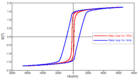 - as the frequency increases, the cycle area increases and the volume energy created by Eddy current losses is corresponding to the difference between the dynamic hysteresis cycle area and the static one.