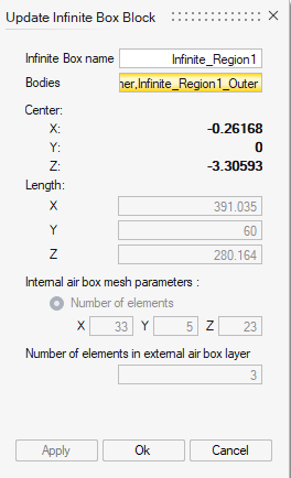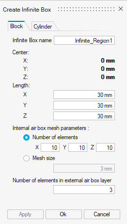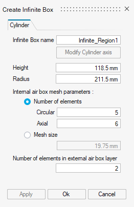 Note: The Outer air box dimensions and mesh are defined automatically from the inner box mesh and the Number of elements in external air box layer.