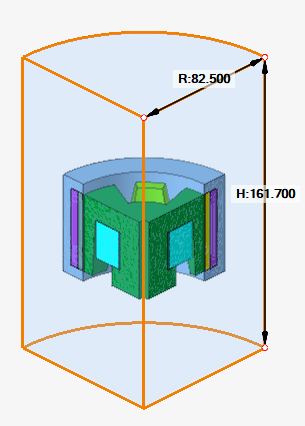 • Radius: defines the cylinder radius. By default, it is 1.5 times the radius of the cylinder circumscribing the device. This value is usually suitable for motor cases where there are often less leakage flux. If needed, user can modify this value.