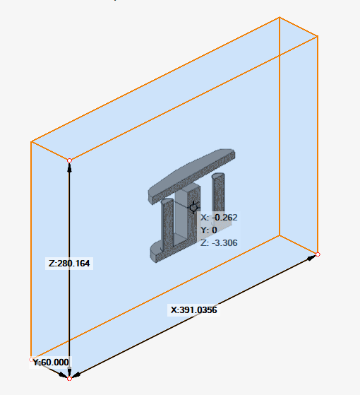 → A preview of the inner infinite box is displayed with its center coordinates and length values: