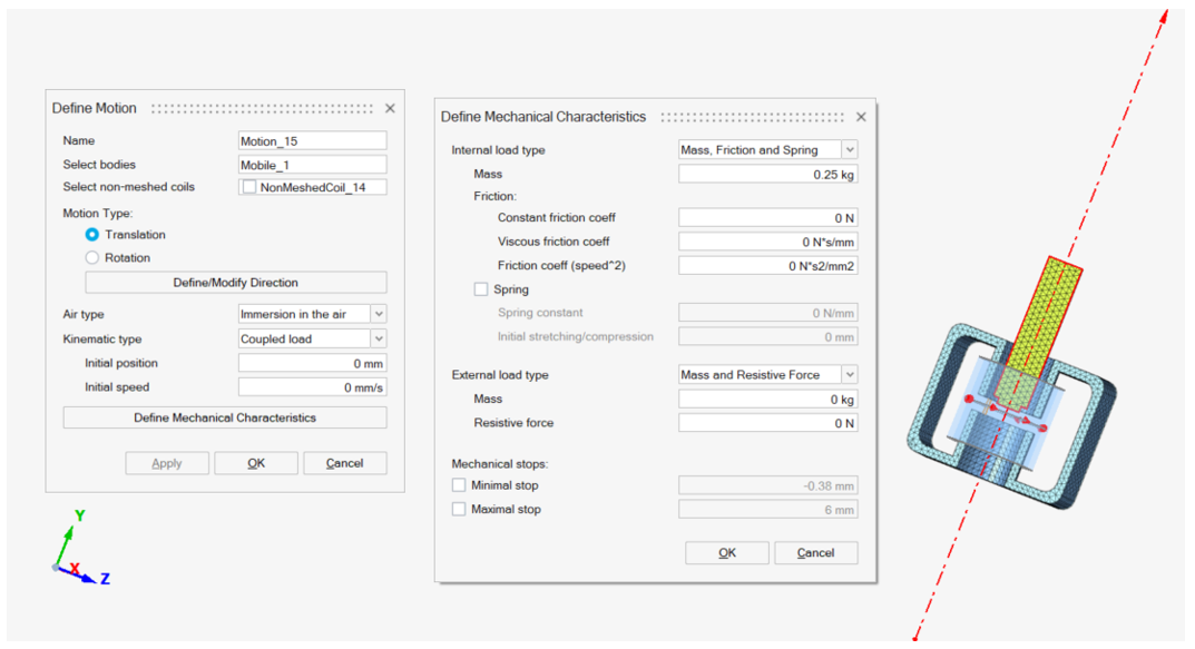 - Define the Kinematic type for example as Coupled load (magneto-mechanical coupling).