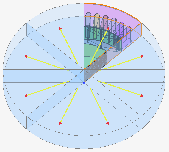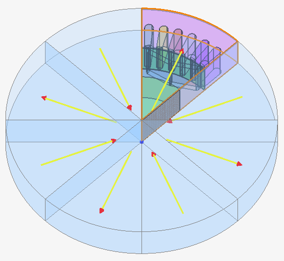It is possible to combine infinite box and circular periodicity. In this case, the geometry of the infinite box (points and lines) automatically follows the periodicity attached to the study domain.
