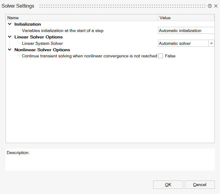 The Solver Settings allow the user to set the Flux solvers options which will be taken by Flux (in batch) to solve the current solution.