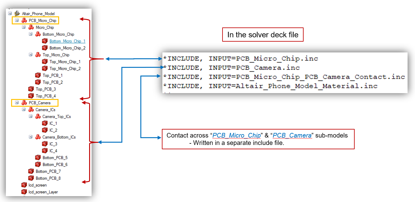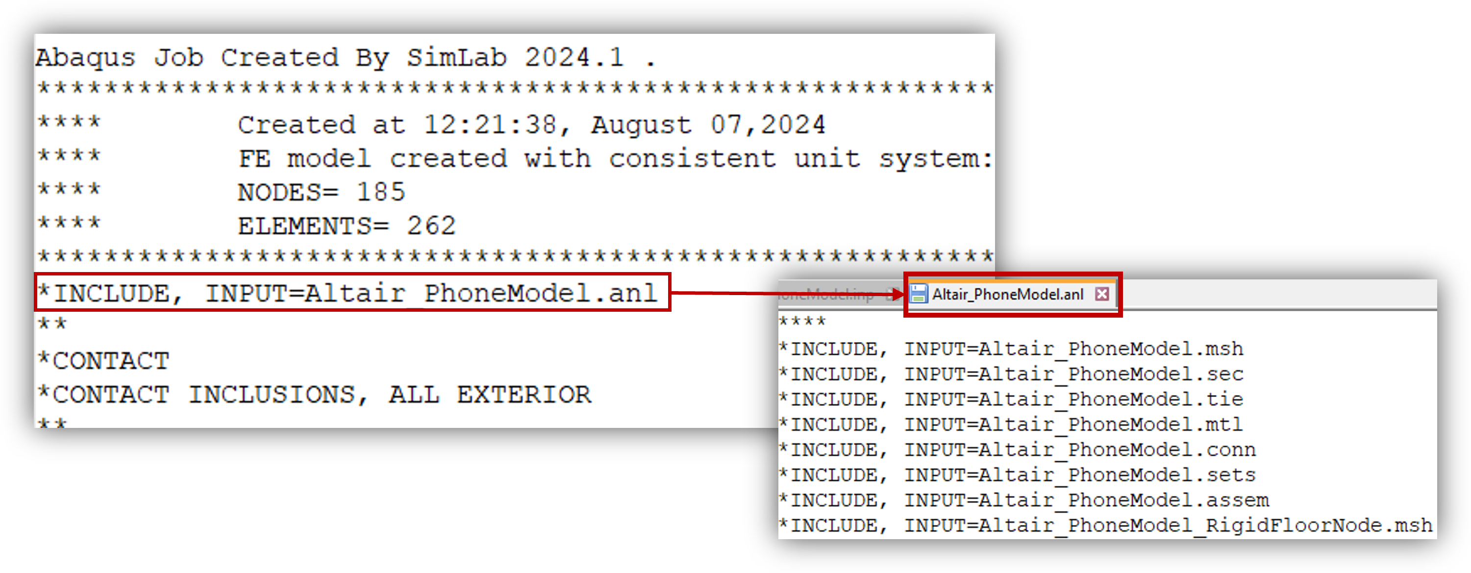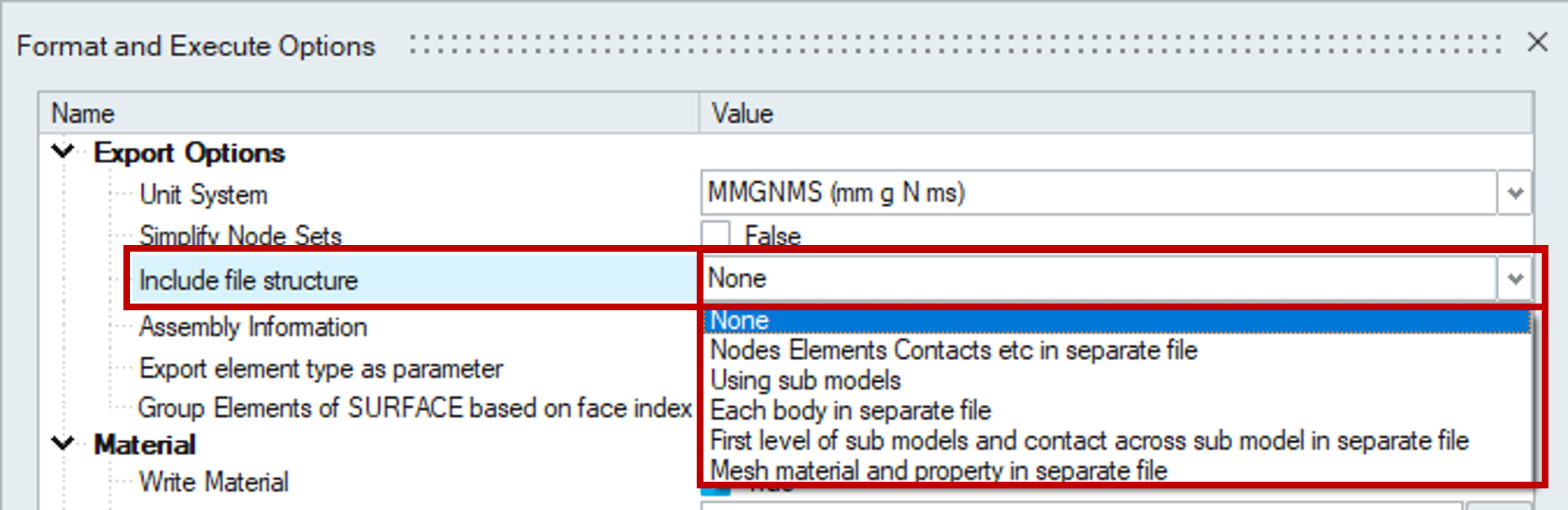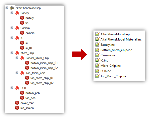 SimLab provides a few methods to automatically organize and export the model as include files. This helps to avoid the manual organization of data by the user.