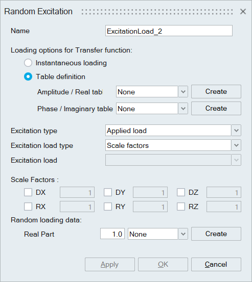- Amplitude table is used to define dynamic load with amplitude as a function of frequency.