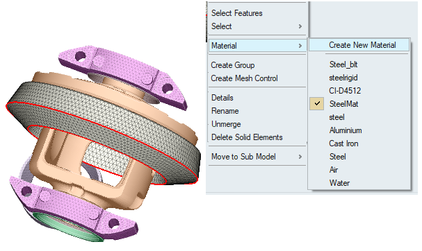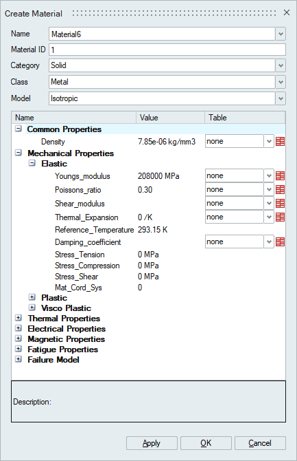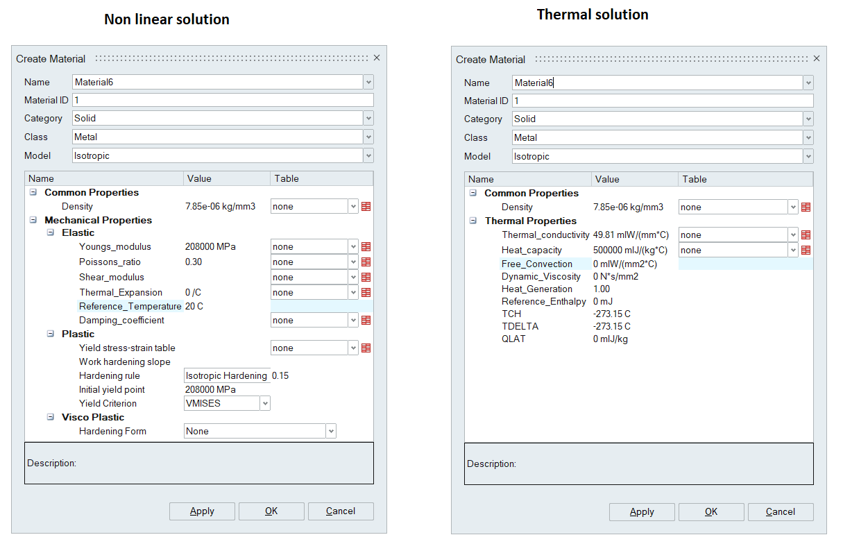 This tool is used to define material for bodies. The parameters of the material dialog will be displayed based on the defined solutions.