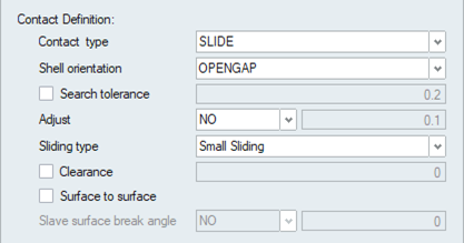 • Contact Type: Used to define contact method - Slide/Stick/Freeze/Contact Property/Tie/Explicit/Cohesive.