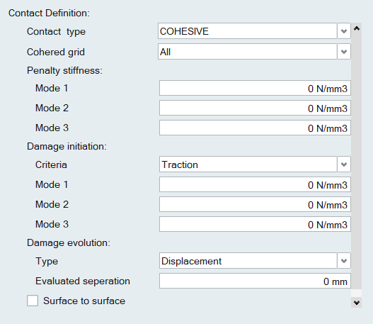 • Penalty stiffness:Used to define the material properties of damage-based cohesive material models.