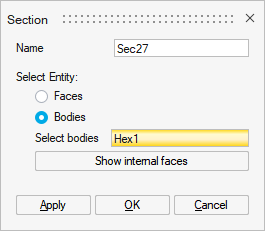 - From the selected bodies, SimLab will find the internal faces and define section on it.
