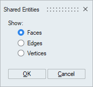 For mesh bodies, this will display the shared entities (faces, edges, vertices) present in the model. If one body is selected, it will display all the shared entities for the body. If two or more bodies are selected, it will display the shared entities that are common to selected bodies.