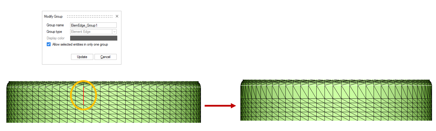 In cases where we need to change the number of element layers in a face along the element edges as reference, this utility can be used to get the specific element edges from the element edge group and can be given as input for Change layers tool.