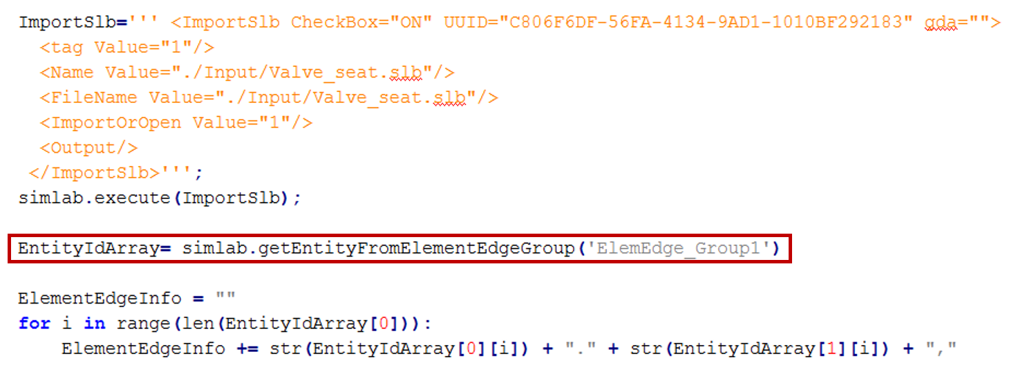 Element Edges= simlab.getEntityFromElementEdgeGroup('GroupName')