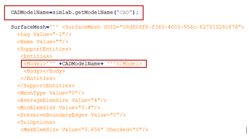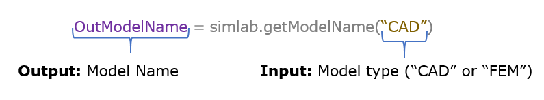OutModelName = simlab.getModelName("ModelType (FEM (or) CAD)")
