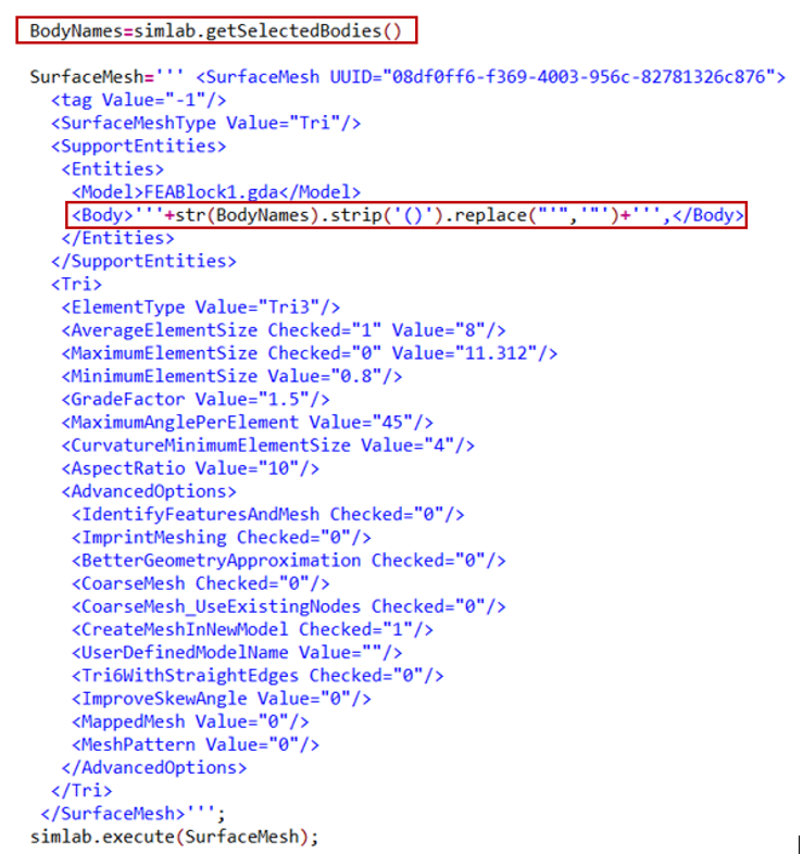 This utility is mostly used in semi automation process, where the bodies selected by a user can be identified by script and proceed further.The identified bodies can be given as input for further process like Create Group, Surface Mesh., that available in script.The body selection can be done while playing the script in interactive mode or use pauseprocess function to pause the script execution, select the required bodies and continue the script execution.