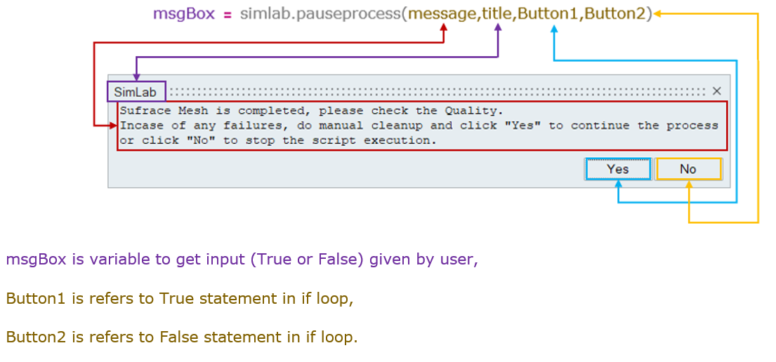MessageBox = simlab.pauseprocess(message,title,Button1,Button2)