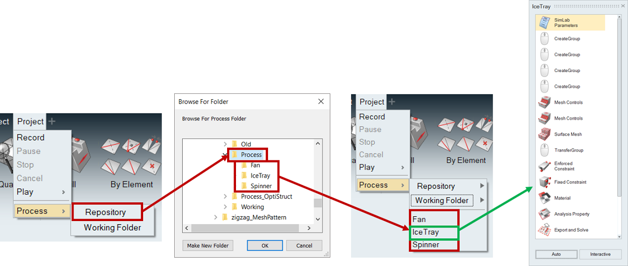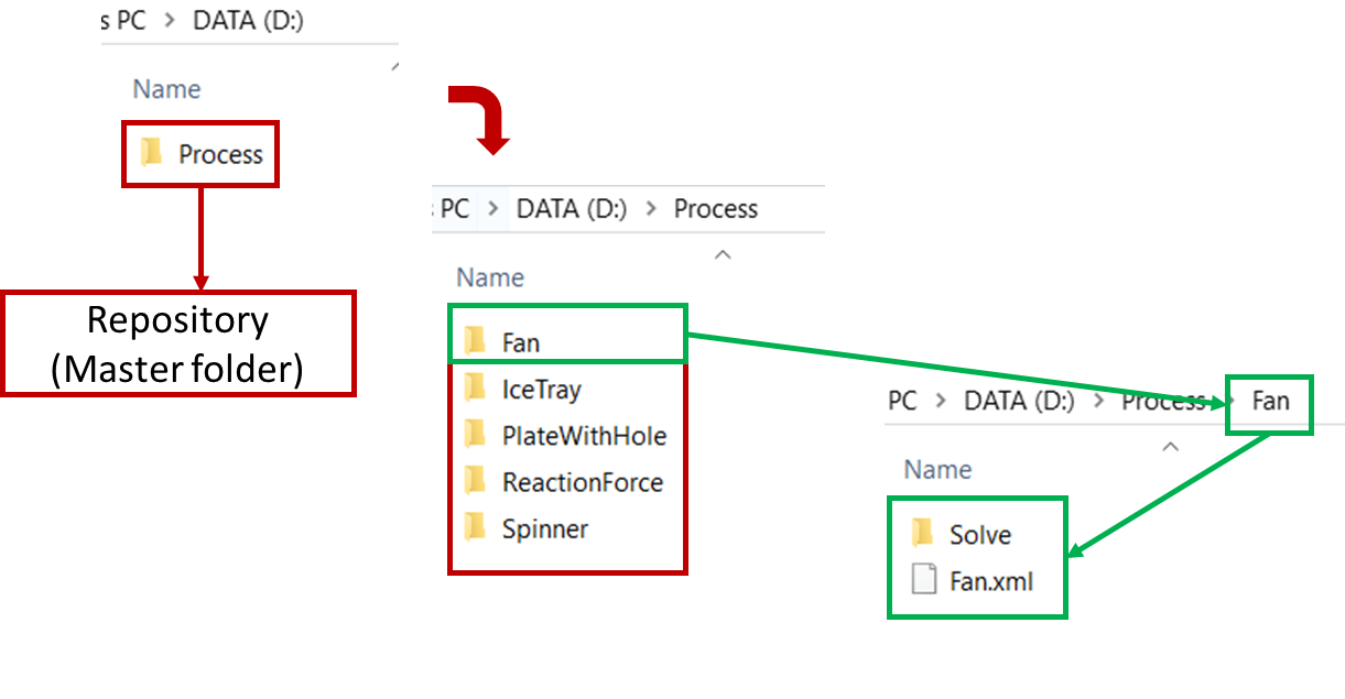 Working folder will be set in the local machine. This will take a copy of the selected process from repository folder and place it in the local machine working folder. Under the working folder, all the related files like output database, solver deck etc will be stored under the working folder.