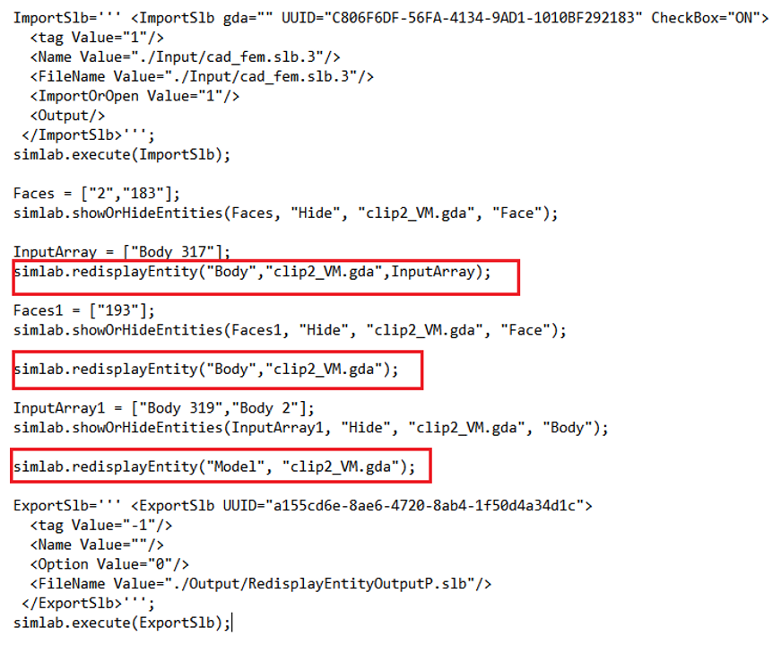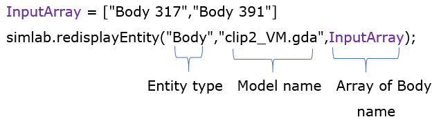 simlab.redisplayEntity("EntityType(Body/Model)","ModelName",InputBodyNames(Optional));