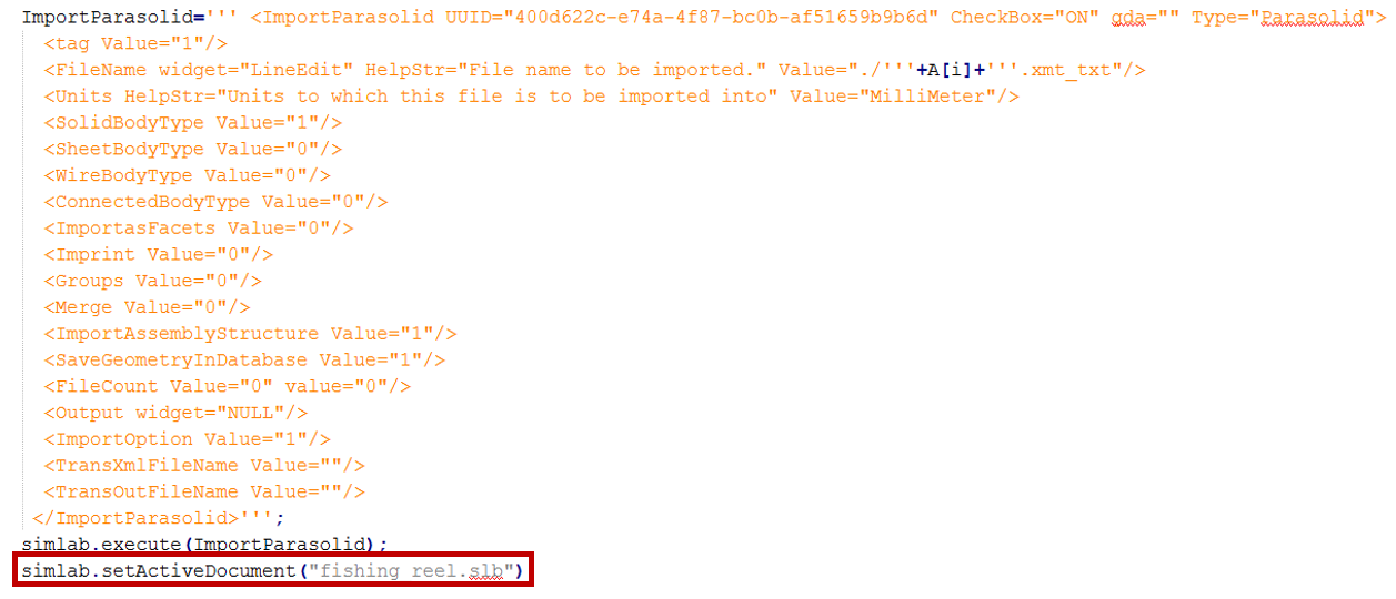 simlab.setActiveDocument(DataBaseIndex or DataBase Name)