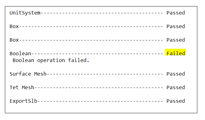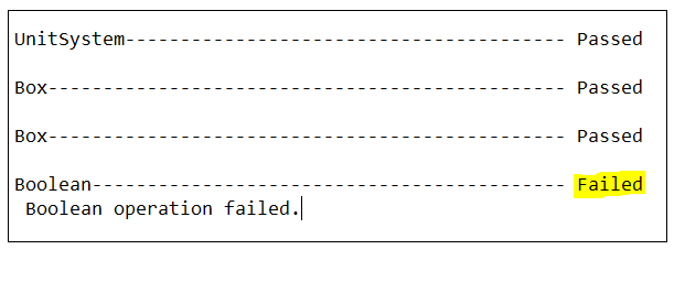 In the preceding process, the Boolean operation encountered a failure. If the utility is not part of the script file, the execution proceeds through all operations. By using this utility, the script execution stops at the Boolean operation itself.