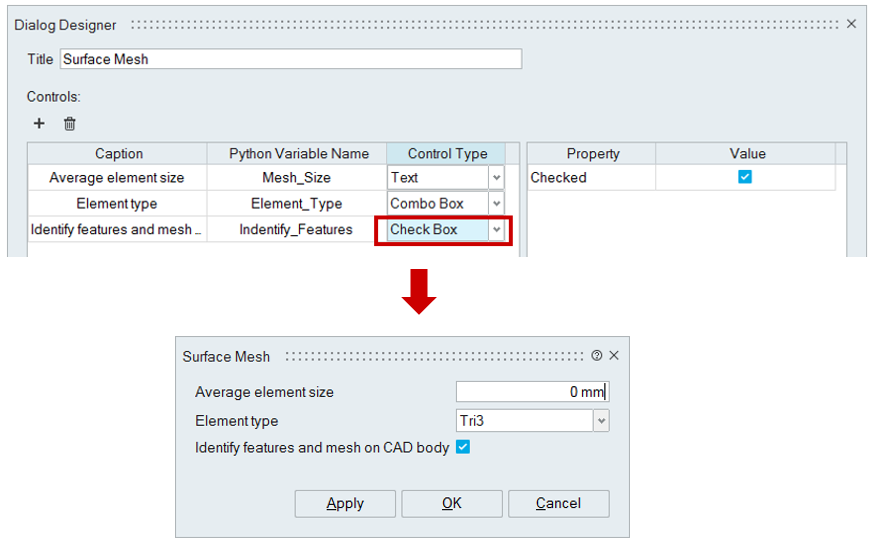 For example, To identify features and mesh on CAD body in Surface Mesh, check box can be added.