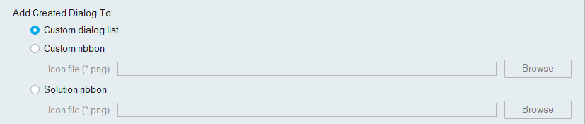 The user can drag and drop the UI Customization dialogs from the Custom Dialog ribbon onto the SimLab Custom ribbon pages.