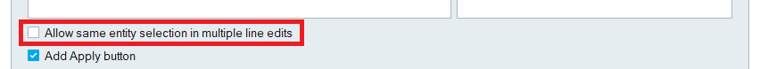This option is used in special cases where users might be interested in selecting an entity in more than one line edit. This option is accessible when users define more than one entity control of the same type.