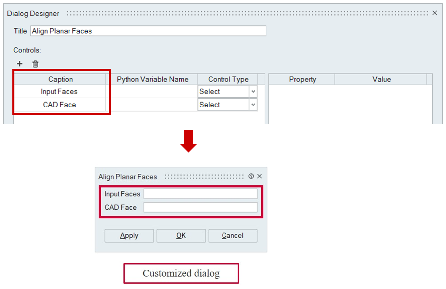User can specify customized name to the ribbon/list created by the Dialog Designer.