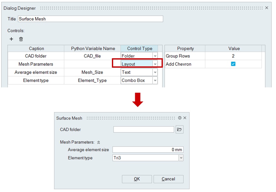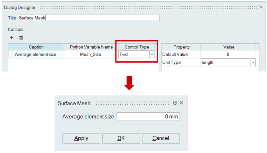 Example: Average mesh size line edit should be editable to enter the mesh size value. For this case, set the line edit type as text.