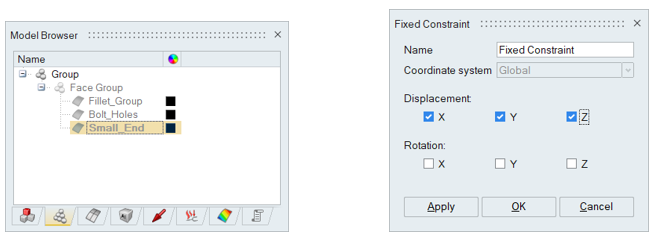 - Go to Analysis > Loads and Constraints > Constraints > Fixed.