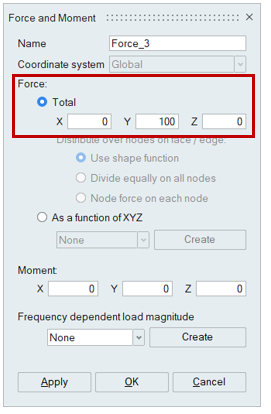 - Go to Analysis > Loads and Constraints > Loads > Force and Moment.