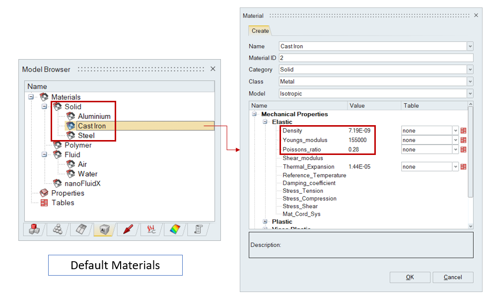 - Cast Iron material will be present in default under property browser along with few other frequently used materials like Steel and Aluminum.