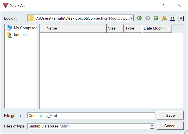 2. Select Output folder and give Connecting_Rod in file name. Then click Save.