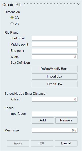 Specify the rib mesh size.
