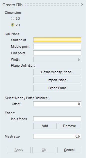 Specify the width of the rib. This is applicable only for 3D rib.
