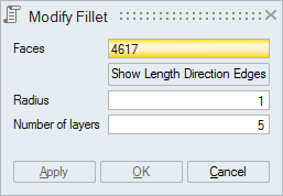 This option is used to modify the existing fillet by changing the radius and number of layer of elements.