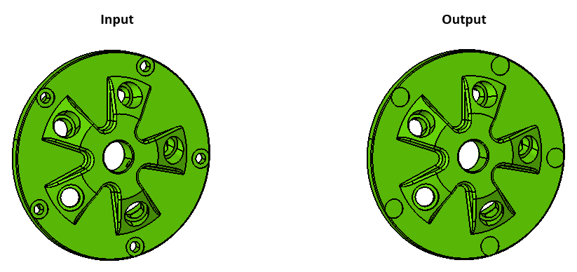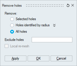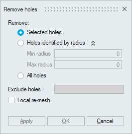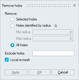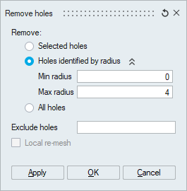 Holes specified in the given radius range will be removed from the selected body.