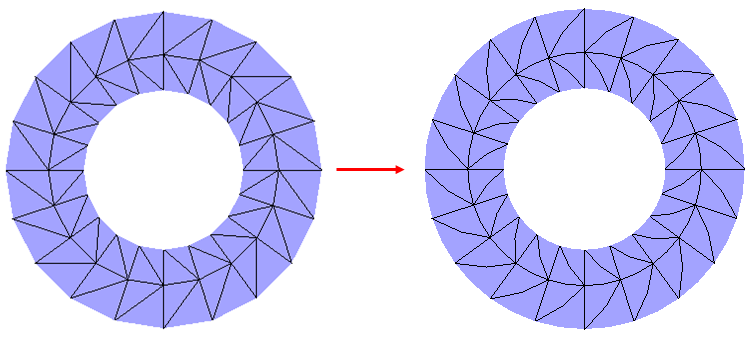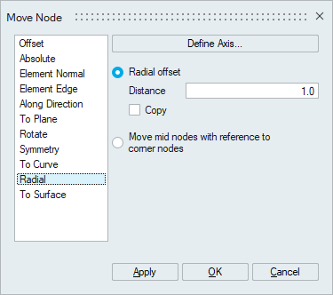 Example: In the below example, nodes are offset along the radial direction for a distance of 0.5 unit.