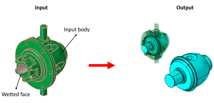 The fluid domain from a body can be extracted automatically with this option. Supported only for CAD Parasolid bodies imported with ‘Save geometry in database’ option.