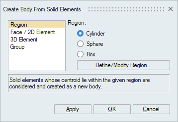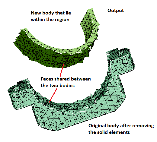 The solid elements that lie within the defined shape (cylinder/sphere/box) are considered and created as a new body.