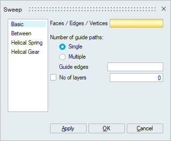 By default, the number of layers to sweep is obtained from the guide edge element count. You can also specify the desired number of layers.