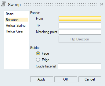 2. Select two faces or two edges to sweep between them.